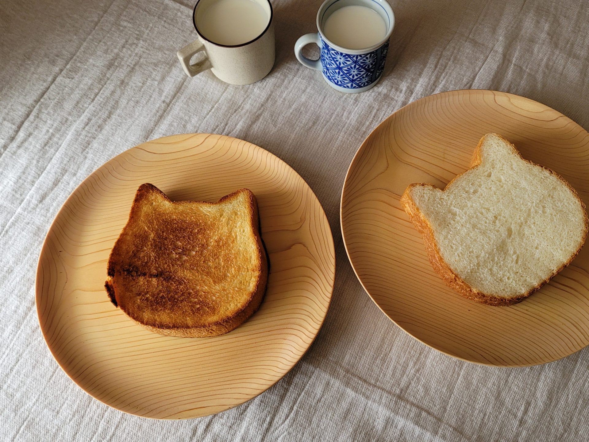 帰宅後、早速いただいてみようと、まず猫のパンをスライス。パン用のナイフでなくてもすっと切れていく感じは、目のしっかり詰まったパンならでは。スライスした断面は本当にキメ細やかで、軽くトーストして少し茶色く日に焼けたような猫のパンをいざ食べてみたら、食感はもっちりしっとり。ミルク100%を感じる優しいまろやかさもあって、パンではあるけれど、ライトなパウンドケーキを食べているかのような「特別な日のパン」という雰囲気がありました。